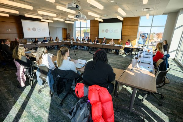 SUNY Oneonta's first cohort of ACE (Advancing Completion through Engagement) students had the chance to sharpen their networking skills in a unique, "speed dating" style event held Wednesday in the Hunt Union Ballroom. Community members volunteered their time to serve as networking mentors, meeting with students for a series of short conversations designed to simulate real-world networking scenarios. The experience helped students practice introductions, make professional connections and build confidence for future opportunities. Local leaders who served as mentors included Oneonta Mayor Mark Drnek; University Council member and alumnus Will Rivera '09; Sean Lewis of the Otsego County Chamber of Commerce; and Sarah Hartmann, CEO of Vesucre and The Makery Oneonta.